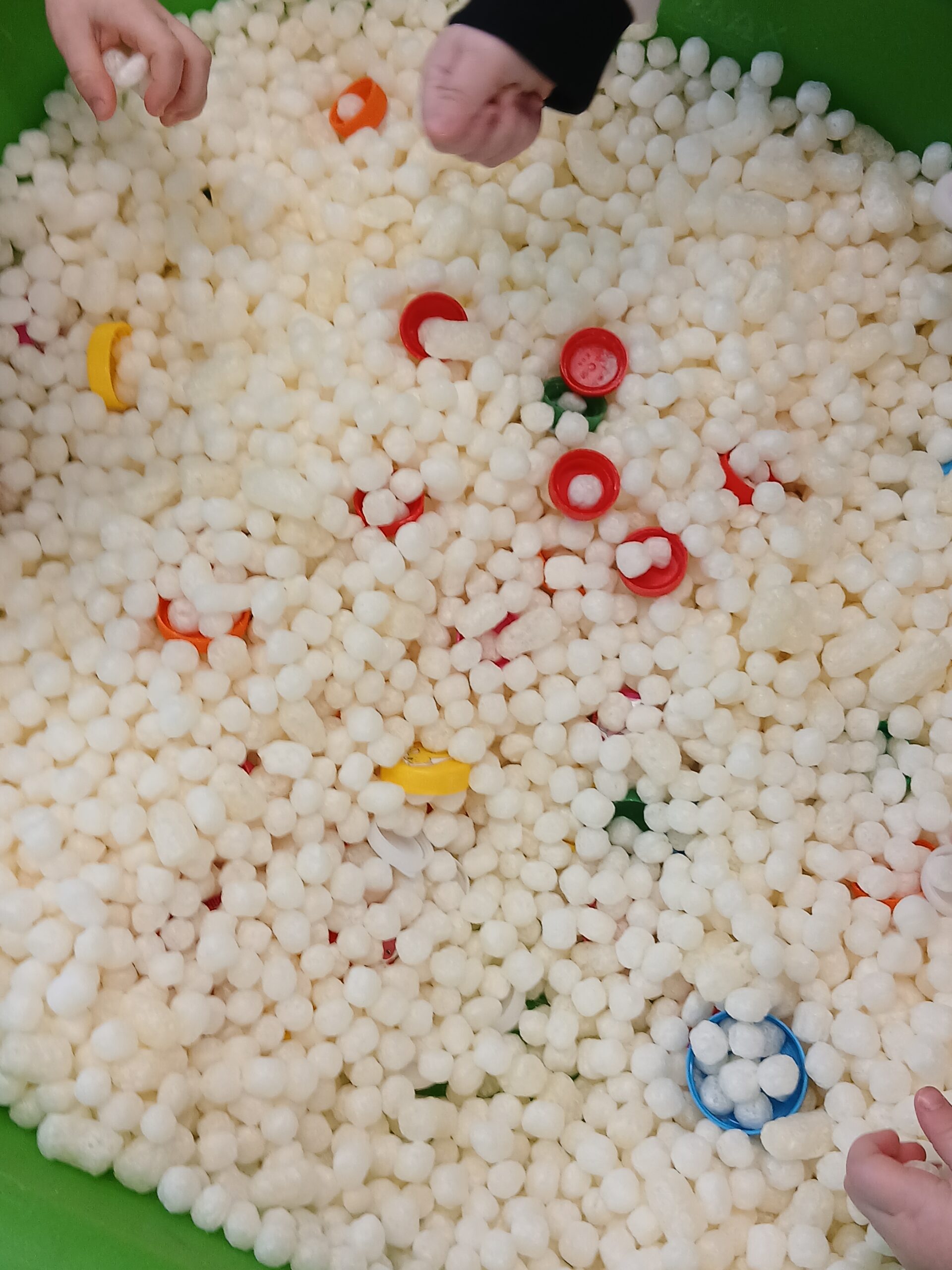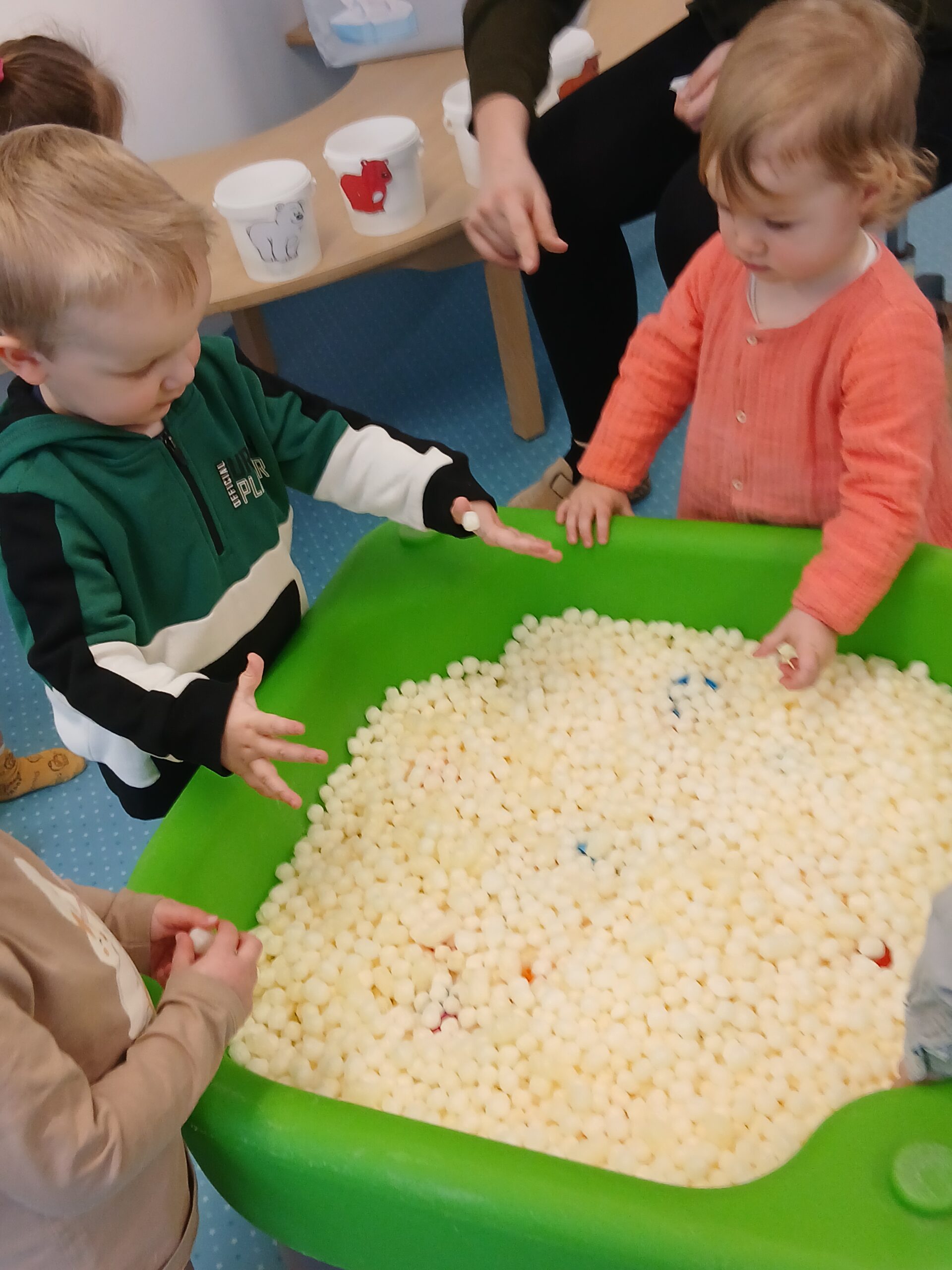 En plus des différentes activités proposées tout au long de leur accueil, cette semaine, les enfants de la micro-crèche ont pu plonger les mains dans les flocons de maïs. Ce fut l’occasion pour eux de transvaser, de remplir, de vider,… mais aussi de rire, d’échanger et de partager avec l’équipe et avec les copains.