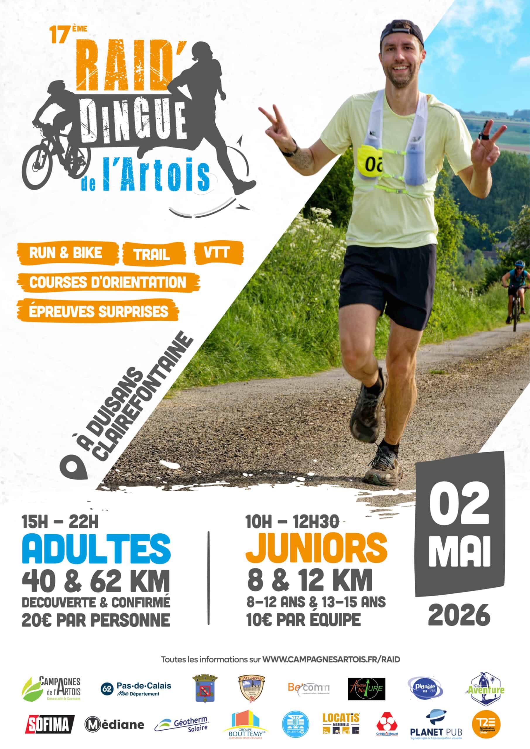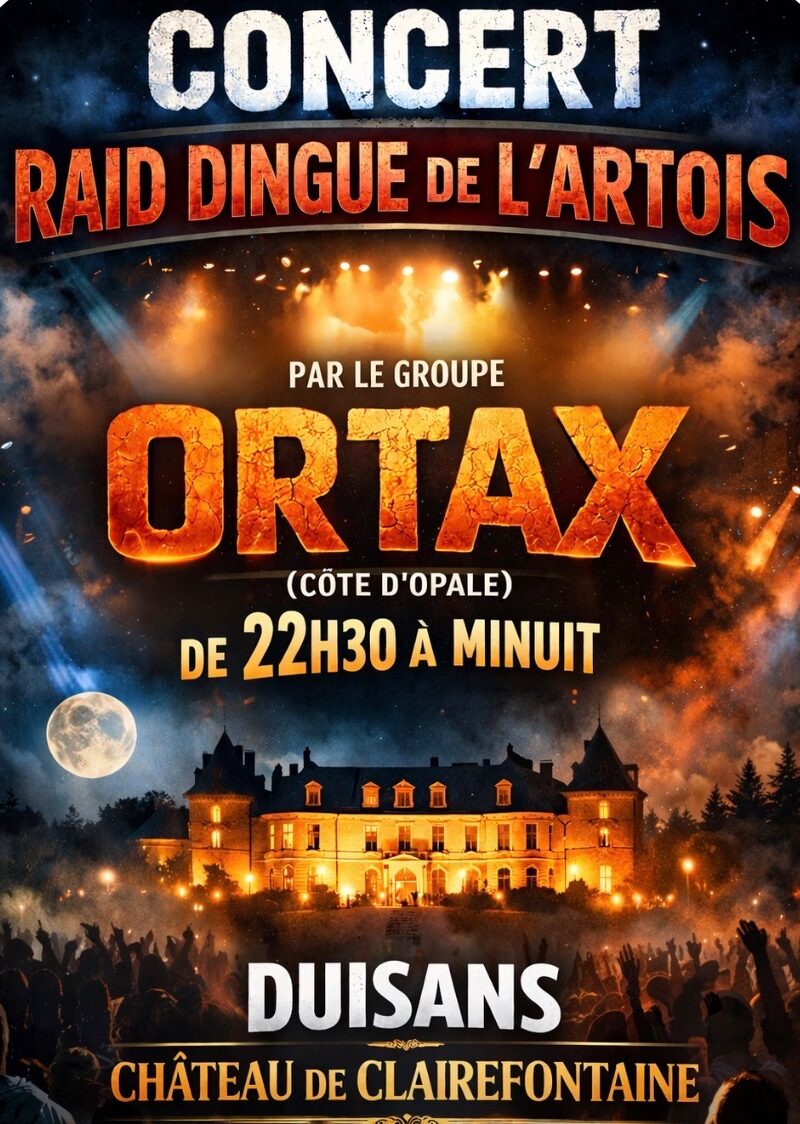 Samedi 2 mai à Duisans (Clairefontaine), venez célébrer la fin du RAID Dingue de l’Artois avec une soirée festive et 2 concerts gratuits !