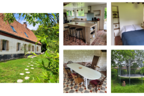 Ce gîte, pouvant accueillir jusqu’à 10 personnes pour un séjour de deux nuits minimum, dispose de quatre chambres, dont une au rez-de-chaussée. Les hôtes bénéficient d’une cuisine équipée, d’un salon avec accès wifi pour faciliter le télétravail, ainsi que d’un lit bébé et d’une chaise haute. Le jardin privatif de 1500m² est équipé d’une terrasse avec barbecue, d’un trampoline, et prochainement d’un terrain de pétanque. Les hôtes peuvent profiter des fruits du verger et des légumes du jardin.