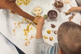 Les sens des touts petits ont été mobilisés lors de différents ateliers proposés : dégustation vitaminée de fruits, découverte de certaines épices comme le paprikra, le curry… pour fabriquer sa propre peinture comestible. Puis les enfants ont laissé leur âme d’artiste s’exprimer.