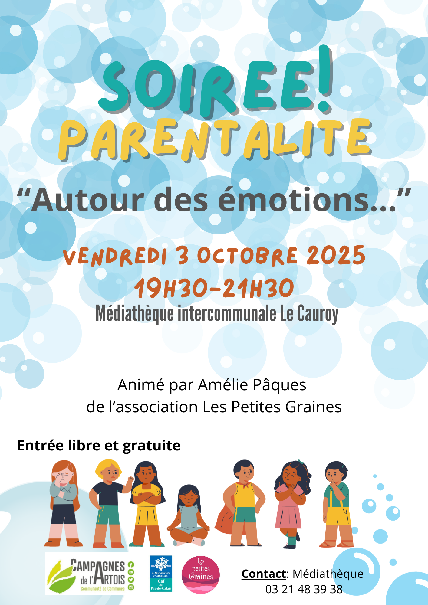 Vendredi 3 octobre de 19h30 à 21h30, la médiathèque intercommunale vous propose une soirée parentalité d’échange autour des émotions.