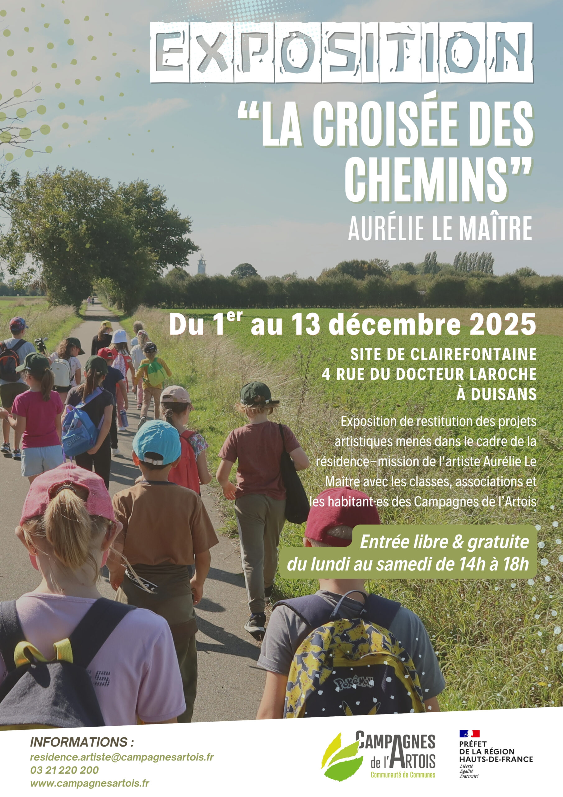 Venez découvrir, dans l’exposition “La croisée des chemins”, les projets artistiques menés avec l’artiste Aurélie Le Maître lors de sa résidence artistique dans les Campagnes de l’Artois.
