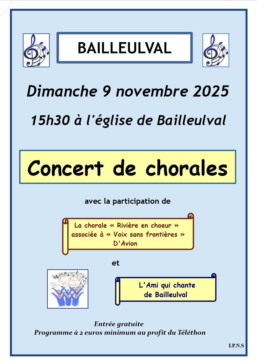 Rendez-vous dimanche 9 novembre à 15h30 à l’église de Bailleulval pour un moment musical au profit du Téléthon.