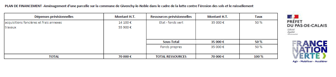 En 2023, financement à hauteur de 35 000€ par l’Etat via le fonds verts soit 50% des dépenses.