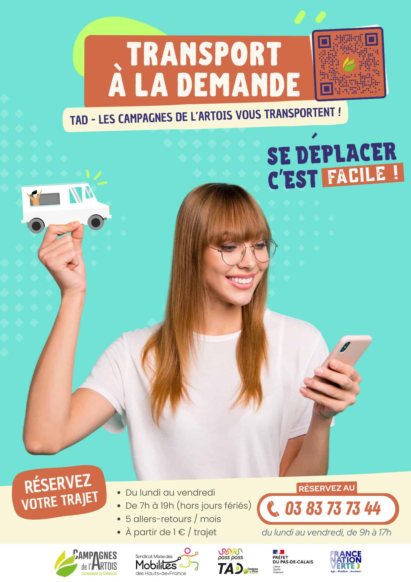 Les réservations s’effectuent via la Centrale de réservation au plus tard à 16H la veille du déplacement au